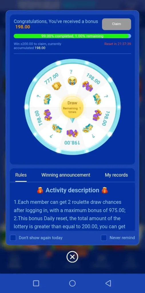 It also gives you an opportunity to get daily bonuses, rewards, credits and promotions that gives you extra earnings. Bonuses like welcoming bonuses, daily login bonuses, referral bonuses, first deposit bonuses and sesonal events bonuses. Use the bonuses wisely to earn money.