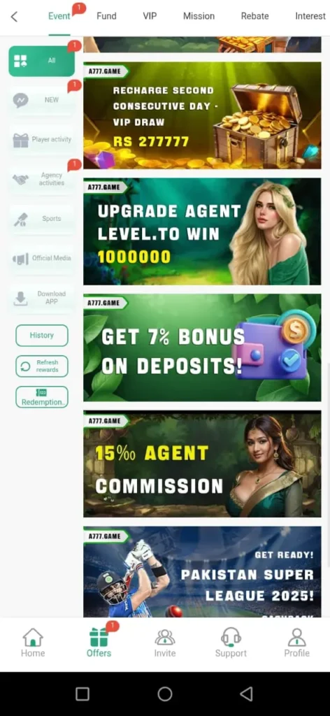 A777 game updates its games, game features and game modes on regular basis to keep the users entertained and engaged and to keep the gaming experience smooth and joyous. Enjoy daily updates and have a great experience.