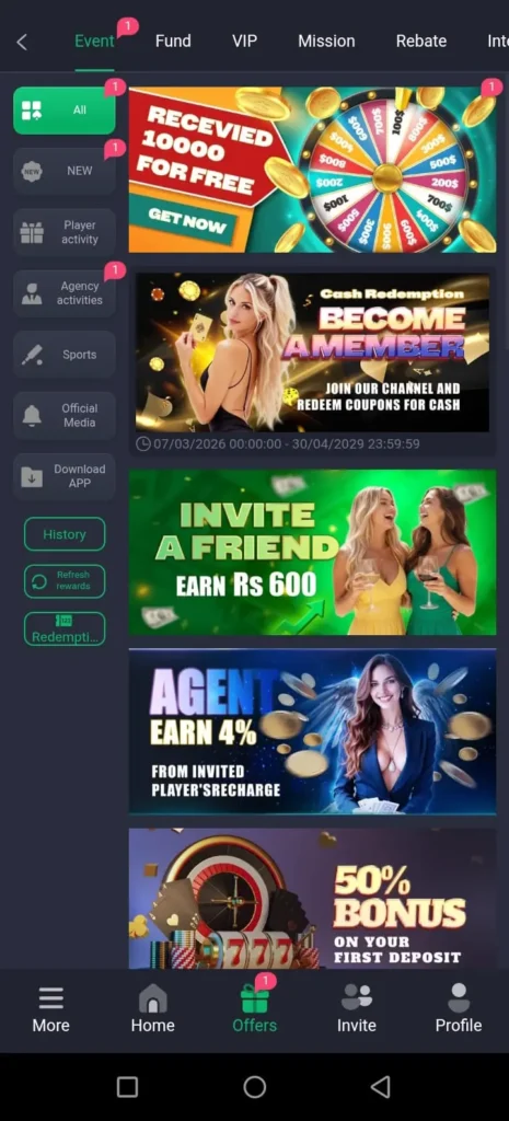 You will get daily bonuses, rewards, credits and promotions. Get yourself additional money while claiming the bonuses like welcoming bonuses, daily login bonuses, referral bonuses, first deposit bonuses, seasonal events bonuses and many more.