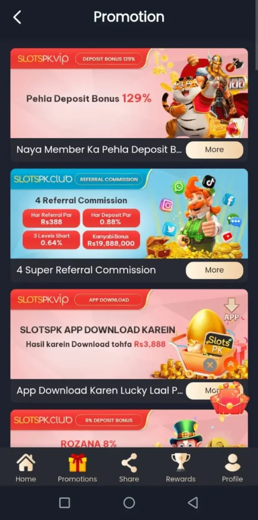 Slots PK game supports Pakistani local payment methods, money deposits and withdrawls through Pakistani local and trustworthy payment methods like jazzcash, easypaisa or bank account is possible .That are too transparent and secure to give game results without any laggings or delays. That saves the time, financial data, login data and the personal information of the players.