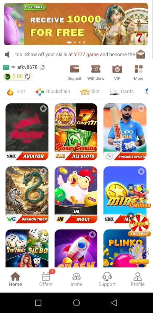Y777 is an amazing gaming platform that is offering various kinds of joyous games to play like casino style games, color predictions, sports betting, skill based games, luck based games, slot games, card games, dice games and many more. Get the games of your choice and play the games to earn real money in return.