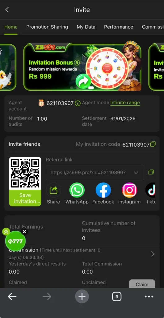 ZS999 game is a best gaming option with wide variety of games to play like casino style games, slot games, card games, mini games, lotteries, skill based games, luck based games and much more. In return of the gameplay, earn real money and withdraw it easily through Pakistani local and trustworthy payment methods like jazzcash, easypaisa or bank account.